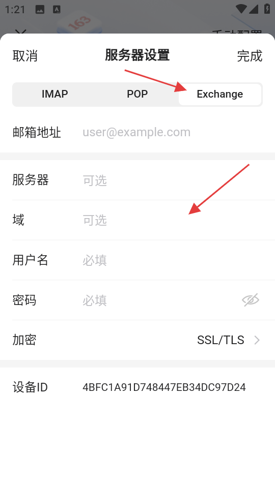 3、用戶可輸入服務(wù)器、域等信息,以及用戶名和密碼,方便用戶配置Exchange郵件服務(wù)器。