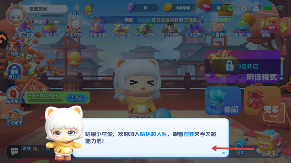 2、角色創(chuàng)建后,會進入游戲主界面,跟隨提示了解游戲基本情況,比如加入哈林超人隊等相關(guān)指引。