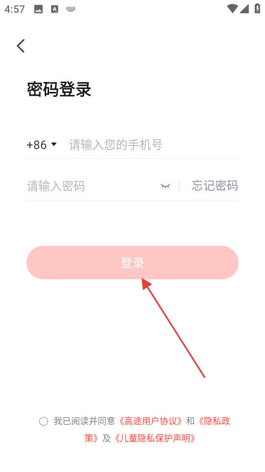 2、進(jìn)入APP的登錄界面在對應(yīng)輸入框中準(zhǔn)確錄入您的手機(jī)號碼,仔細(xì)填入設(shè)置好的密碼,確認(rèn)信息無誤后點(diǎn)擊登錄按鈕即可開啟APP的使用之旅。