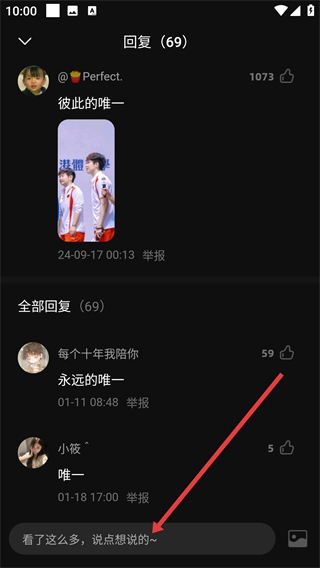 4、在留言詳情及回復(fù)頁面,看到下方的輸入框,點(diǎn)擊輸入框,輸入想要說的內(nèi)容,進(jìn)行留言互動(dòng)。