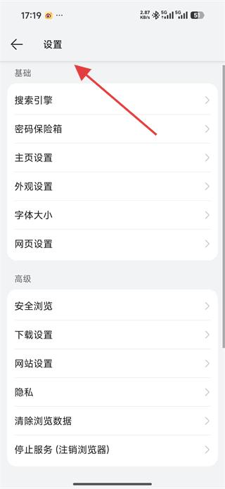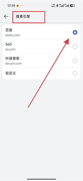 2、在基礎(chǔ)設(shè)置中點擊搜索引擎選項,進入后可選擇百度、360、抖音搜索等搜索引擎,選擇后點擊保存。