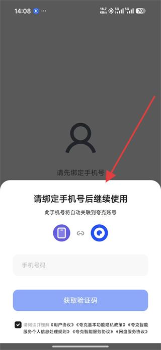 1、打開軟件,若彈出請綁定手機號的提示,可選擇綁定方式,輸入手機號碼并獲取驗證碼,完成手機號綁定后繼續(xù)使用。