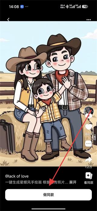 4、若看到心儀的同款風(fēng)格作品,可點擊做同款按鈕,根據(jù)提示上傳照片等信息,生成與該風(fēng)格一致的專屬圖片。