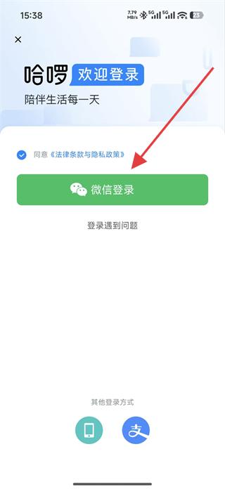 2、在登錄頁面勾選同意法律條款與隱私政策,點擊微信登錄按鈕,完成賬號登錄。