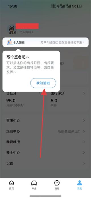 3、登錄后看到寫個人簽名的提示,點擊我知道啦按鈕,關(guān)閉提示,進(jìn)入個人資料頁面。