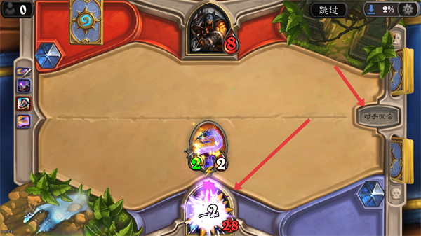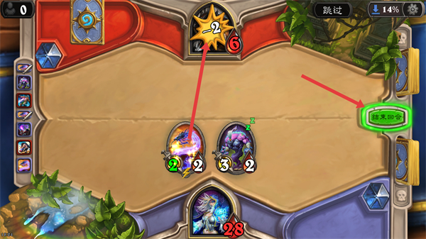 3、己方回合,使用隨從等進行操作后,若本回合無其他行動,點擊結束回合,輪到對手行動。