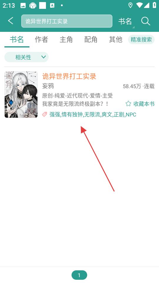 2、在搜索頁,輸入小說名稱,如詭異世界打工實錄,找到對應作品,查看作者、字數等信息,確認是目標小說。