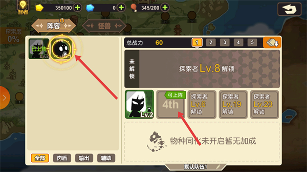 3、在陣容界面可調(diào)整上陣怪獸,根據(jù)怪獸等級和屬性搭配陣容,提升隊伍總戰(zhàn)力,應(yīng)對不同戰(zhàn)斗。