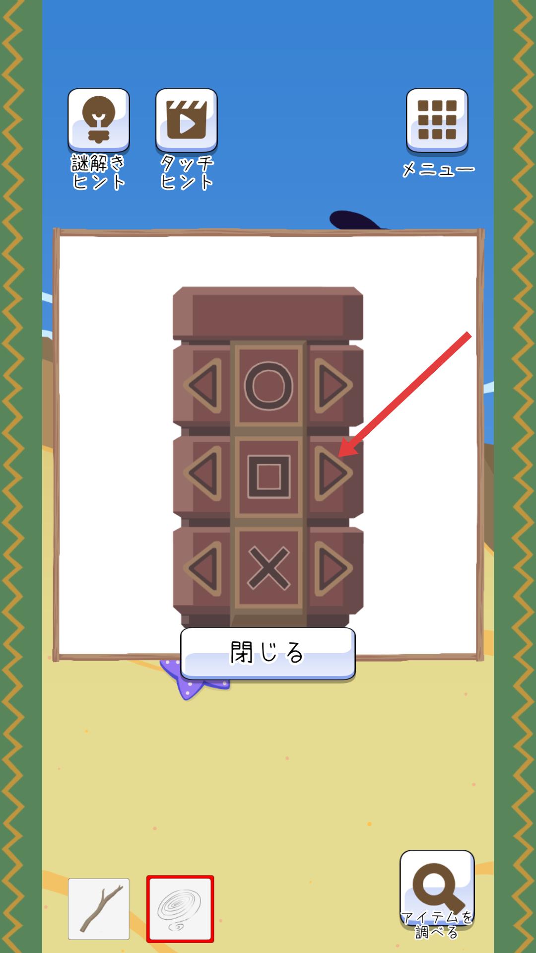 4、遇到帶有圖案的圖騰類物品時,點擊物品上的箭頭圖案,可觸發(fā)相關(guān)機(jī)關(guān)或解謎操作,解鎖新的游戲內(nèi)容。