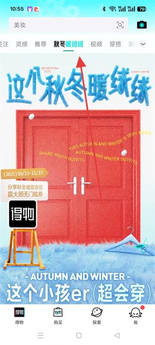 2、切換到秋冬暖絨絨板塊,可查看相關(guān)穿搭和商品推薦,如冬季外套等,了解當(dāng)季潮流趨勢。