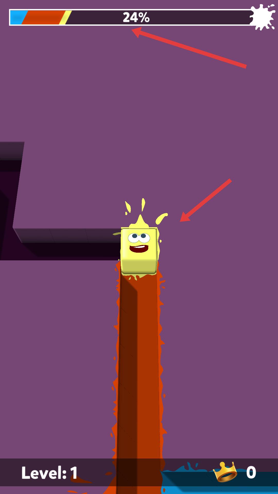 3、操控方塊在迷宮中移動,沾染顏色后,上方進度條會增加,此時已達到24,繼續(xù)引導(dǎo)方塊沿路徑前行,完成關(guān)卡進度。