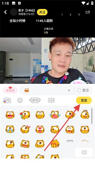 4、登錄成功后在直播間的聊天輸入?yún)^(qū)域,可選擇表情等內(nèi)容,輸入想要發(fā)送的互動信息,然后點擊發(fā)送按鈕,與主播和其他觀眾進行互動交流。