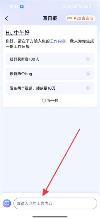 3、在寫日報頁面點擊下方輸入框,輸入自己的工作內(nèi)容,如修復(fù)兩個bug等。