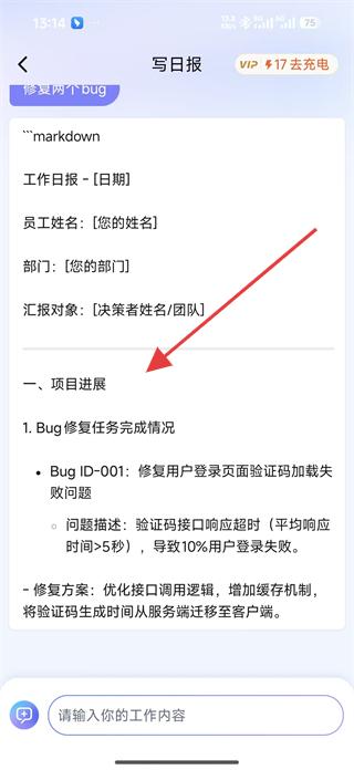 4、輸入完成后會生成工作日報,包含項目進展、Bug修復(fù)任務(wù)完成情況等詳細內(nèi)容。