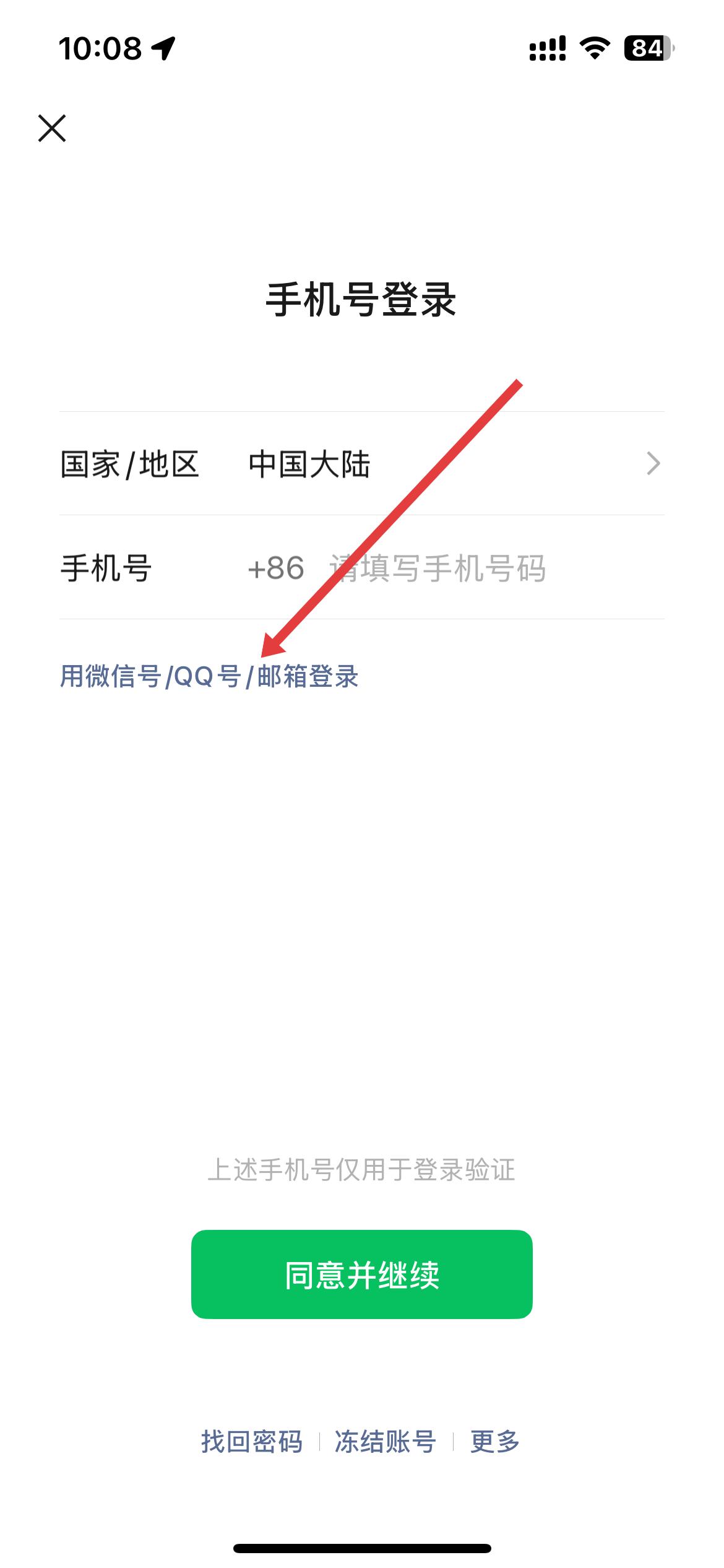 1、進(jìn)入登錄界面,若不想用手機(jī)號(hào)登錄,可點(diǎn)擊用微信號(hào)、QQ號(hào)、郵箱登錄,選擇其他賬號(hào)登錄方式。