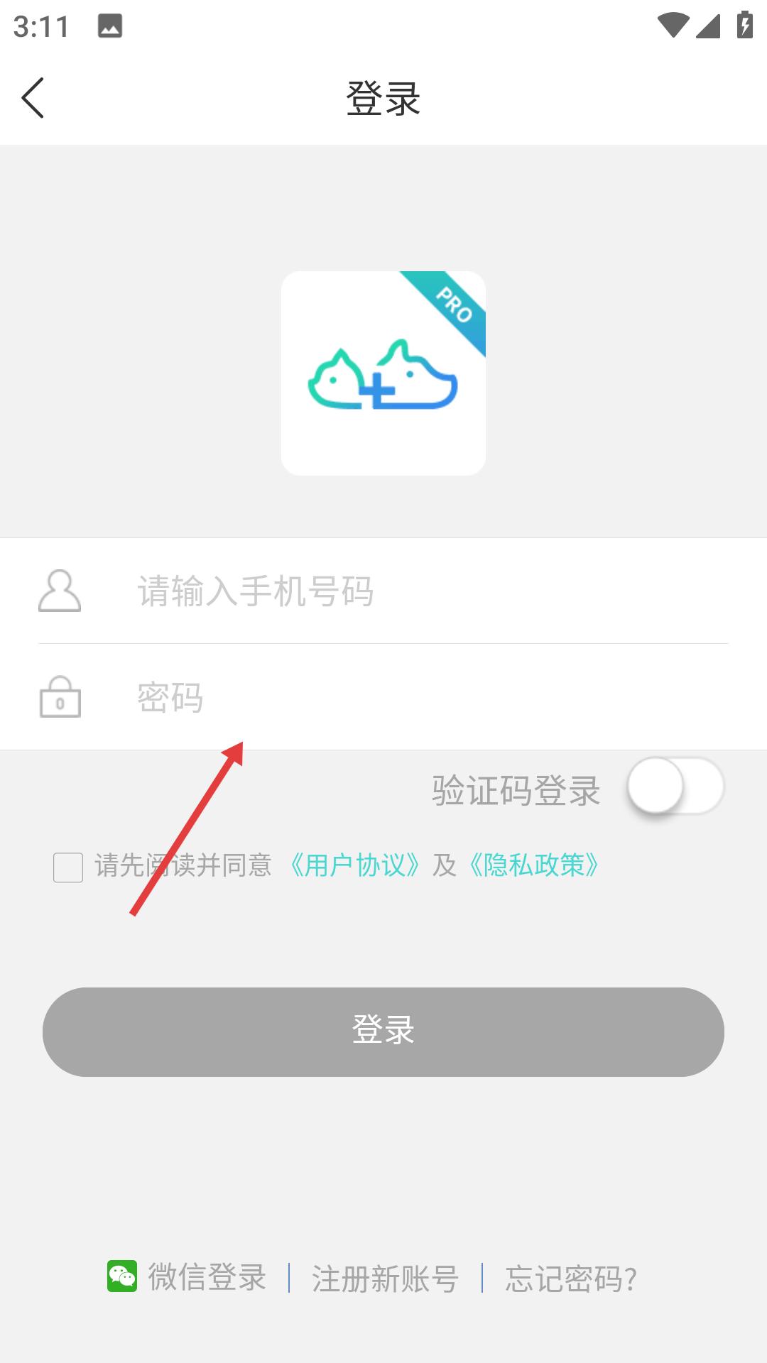 2、在微寵醫(yī)登錄頁(yè),輸入手機(jī)號(hào)與密碼,勾選協(xié)議后點(diǎn)登錄,進(jìn)入后利用功能生成所需語(yǔ)句。