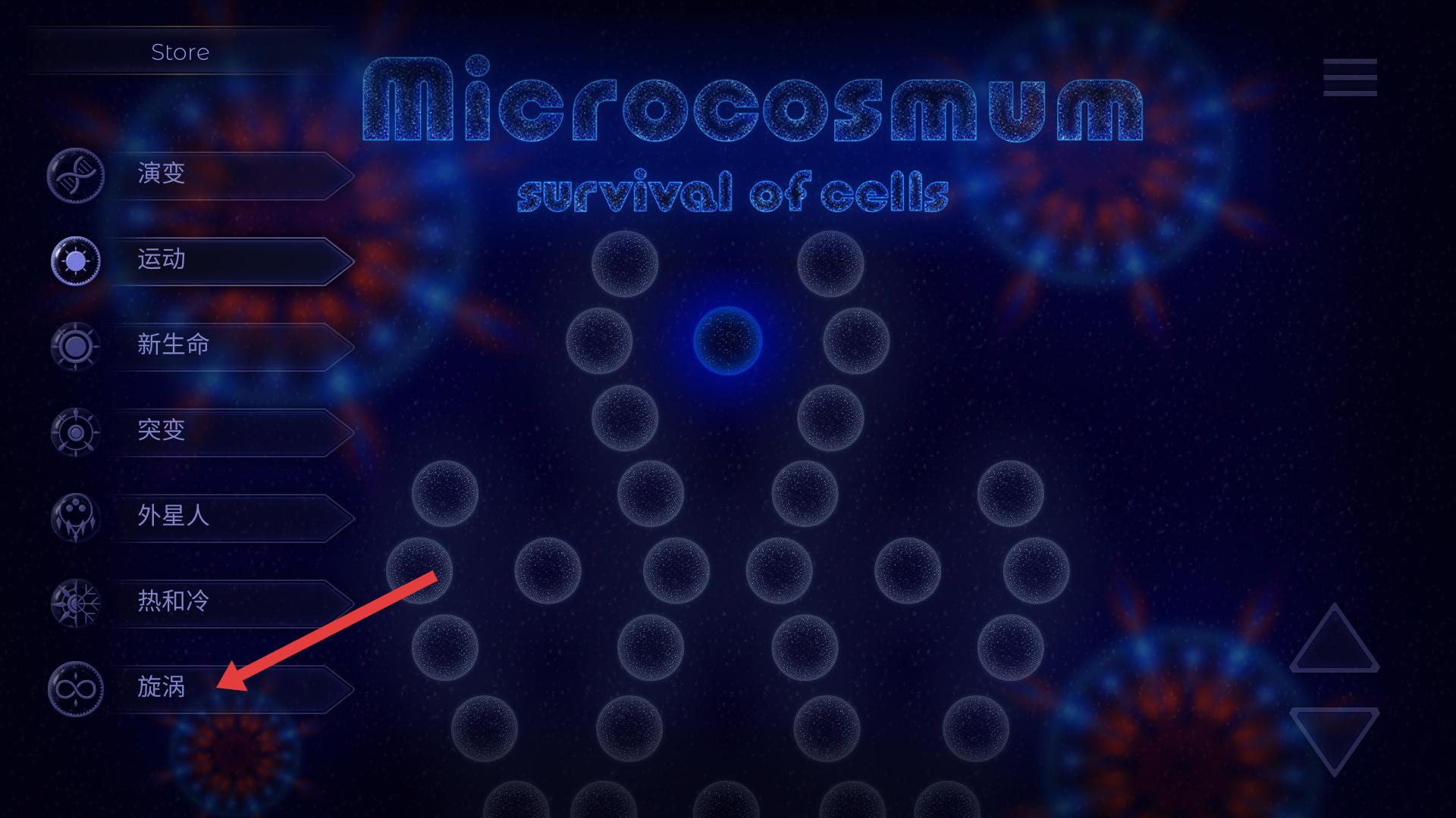 1、在游戲主界面,點擊【旋渦】選項,即可進(jìn)入對應(yīng)的游戲場景,開啟該場景下的細(xì)胞生存挑戰(zhàn)。