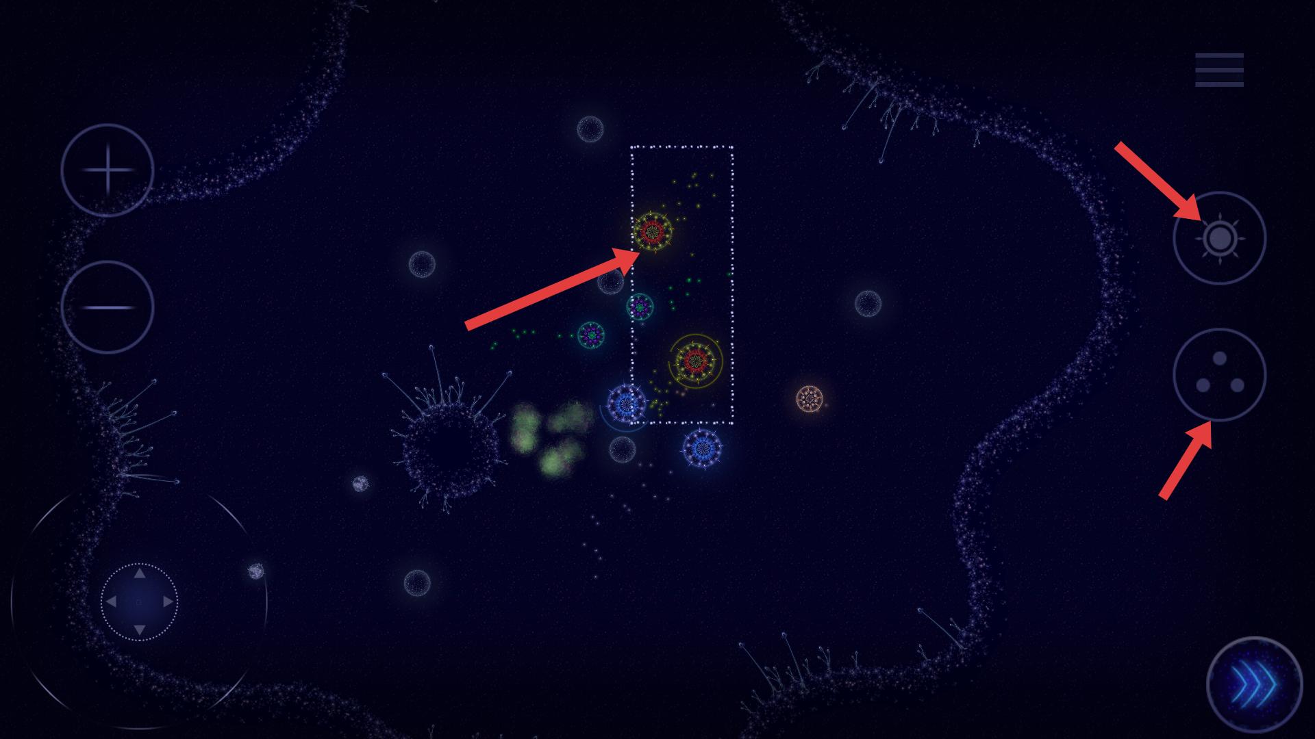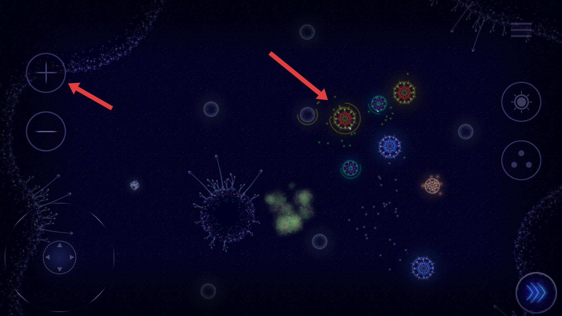 3、遇到目標(biāo)細(xì)胞時,點擊右側(cè)的功能按鈕,可對目標(biāo)細(xì)胞進(jìn)行操作,以此來爭奪資源或消滅對手。