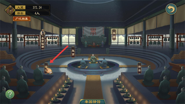 1、在驛館界面可進(jìn)行廣泛招幕,點(diǎn)擊游女區(qū)域,可查看游女信息,為國家發(fā)展招攬人才。