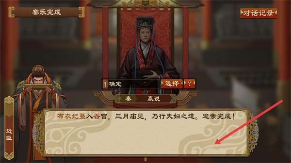 4、迎娶完成后會(huì)出現(xiàn)提示,顯示迎娶流程完成,推進(jìn)游戲劇情,豐富國家宮廷生活。