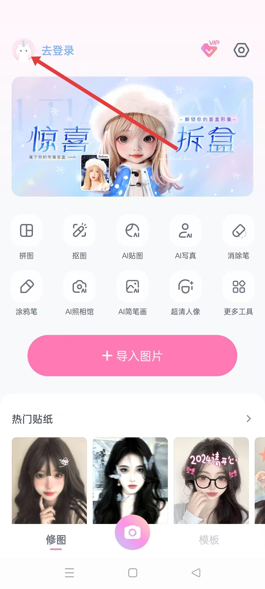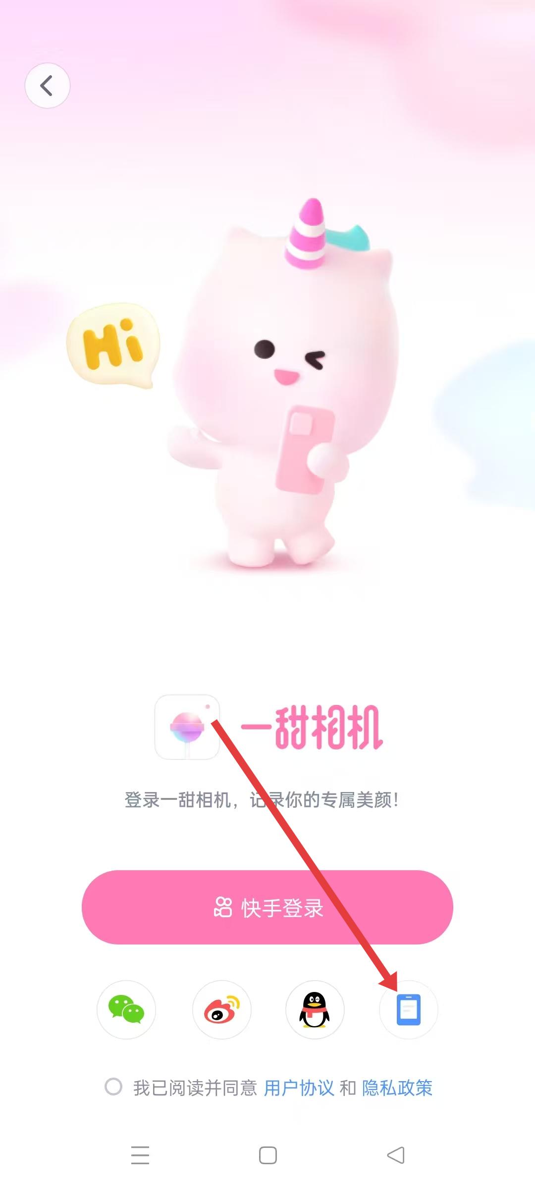 1、一甜相機APP主界面,點擊左上角去登錄,進入登錄選擇界面,可選擇多種登錄方式。
