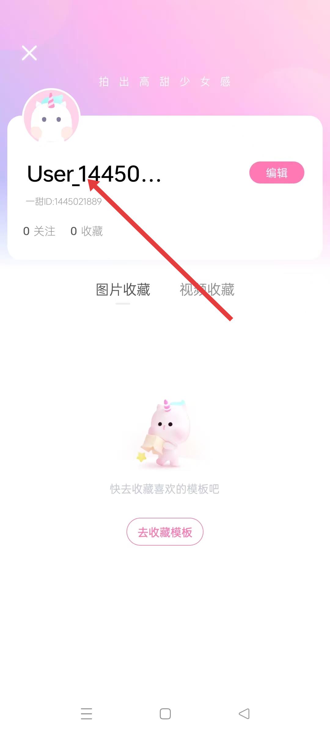 4、登錄成功后,進入個人中心界面,可查看用戶名、一甜ID等信息,還可進行關注、收藏模板等操作。