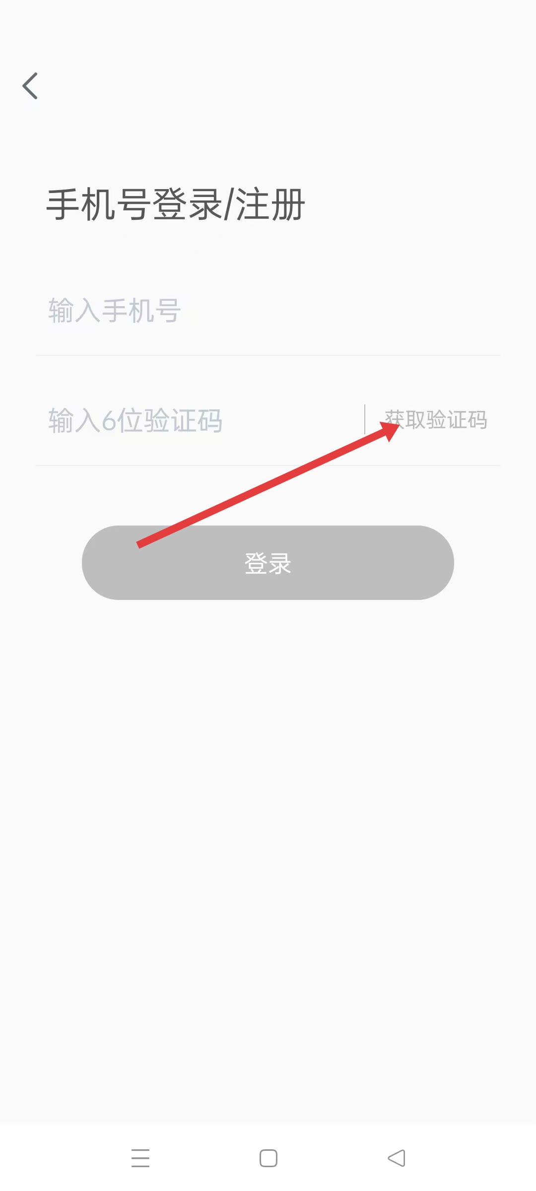 3、手機號登錄、注冊頁面,輸入手機號,點擊獲取驗證碼,輸入6位驗證碼后點擊登錄,完成賬號登錄。