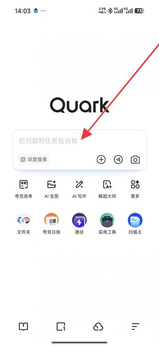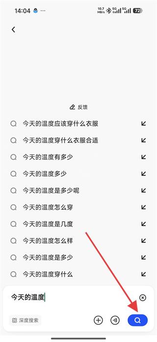 1、打開夸克軟件在主界面搜索欄輸入今天的溫度,點(diǎn)擊搜索按鈕,進(jìn)入相關(guān)問題列表頁。