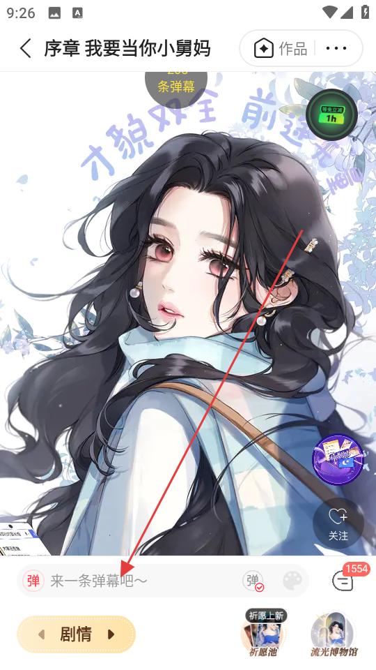 3、進(jìn)入漫畫(huà)閱讀頁(yè)面,點(diǎn)擊彈幕輸入框,發(fā)送彈幕互動(dòng),也可點(diǎn)擊關(guān)注按鈕,關(guān)注該漫畫(huà)作者。