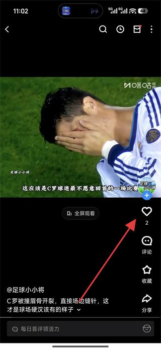 4、在視頻播放頁面,可進(jìn)行點(diǎn)贊、評論、收藏、分享等互動(dòng)操作,如對C羅相關(guān)的視頻進(jìn)行點(diǎn)贊,參與體育內(nèi)容的討論。