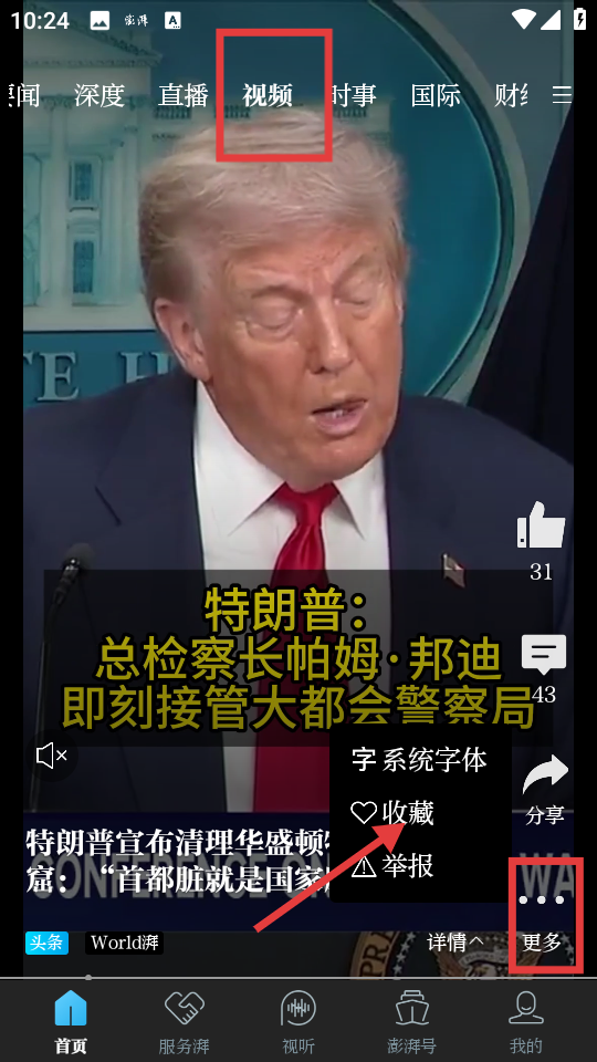 1、打開進(jìn)入視頻板塊找到想收藏的視頻,播放頁(yè)面右下角有更多按鈕,點(diǎn)擊彈出菜單選擇收藏選項(xiàng),即可將該視頻加入收藏列表,方便后續(xù)查找回顧。