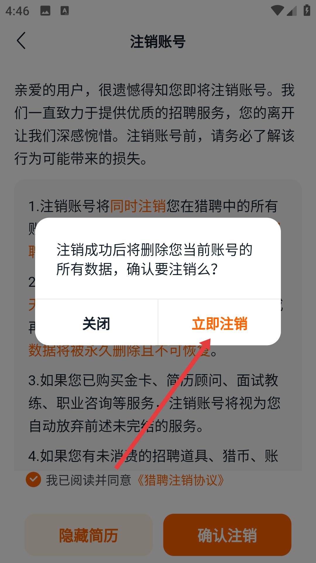 4、接著會(huì)彈出確認(rèn)注銷的提示,告知注銷成功后賬號(hào)所有數(shù)據(jù)將被刪除,若確認(rèn)要注銷,點(diǎn)擊立即注銷,完成賬號(hào)注銷。