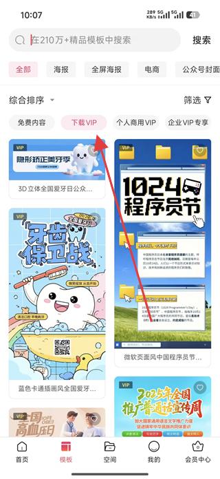 3、還可切換查看下載VIP、個人商用VIP等分類的模板,選擇適合的模板進行編輯,滿足不同使用需求。