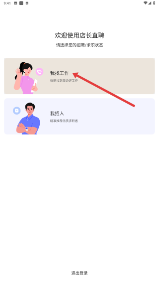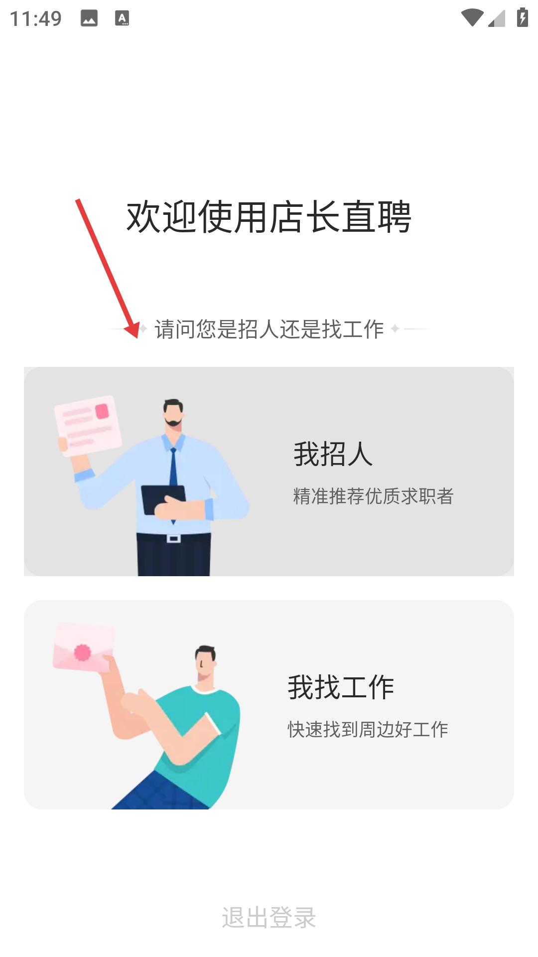 1、店長直聘界面簡潔明了,用戶進(jìn)入后需選擇我招人或我找工作,前者可精準(zhǔn)匹配求職者,后者能快速定位周邊好崗位