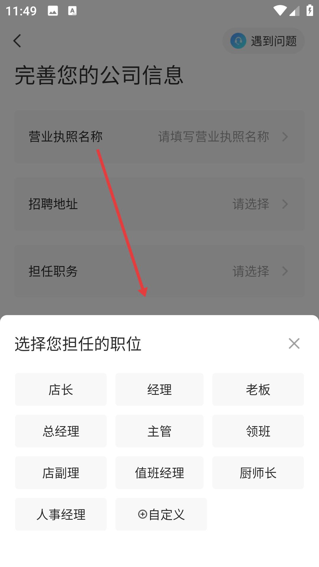 3、當(dāng)點(diǎn)擊擔(dān)任職務(wù)選項(xiàng)時(shí),會(huì)彈出職位選擇列表,涵蓋店長、經(jīng)理等多種常見職務(wù),也支持自定義設(shè)置,滿足不同用戶需求。