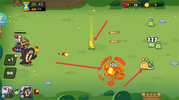 4、戰(zhàn)斗時英雄會攻擊不同種類的敵人,同時場景里會出現(xiàn)道具,拾取道具可助力戰(zhàn)斗,獲取更多資源。