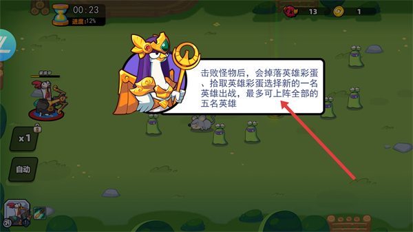 1、擊敗怪物后會掉落英雄彩蛋,拾取彩蛋可選擇新英雄出戰(zhàn),最多可上陣五名英雄,組建英雄隊伍。