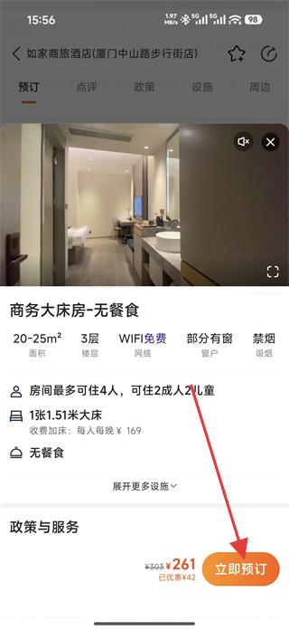 4、確認(rèn)房型信息無誤后,點(diǎn)擊立即預(yù)訂,完成該酒店房型的預(yù)訂操作。