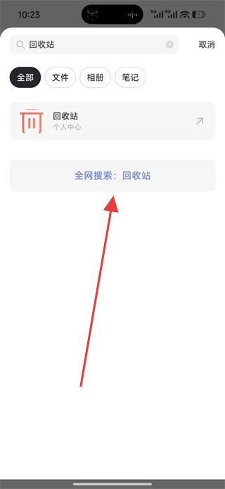 1、在搜索欄輸入回收站,點(diǎn)擊全網(wǎng)搜索回收站,可查找相關(guān)回收站信息。