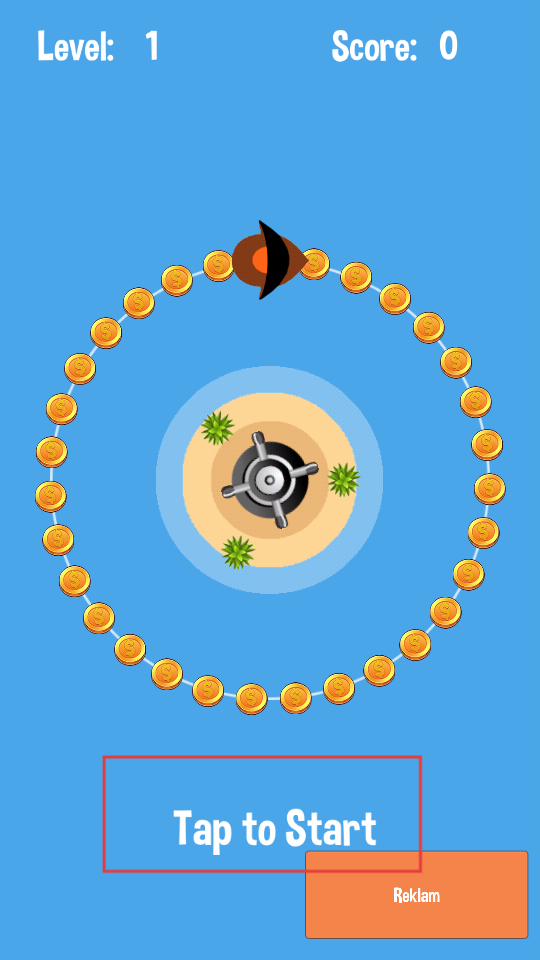1、點擊Tap to Start,開始游戲,操控角色在環(huán)形路徑上移動,收集金幣,注意避開障礙物。