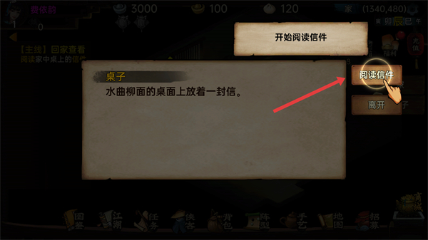 2、回家后閱讀信件,查看桌上的信件內(nèi)容,獲取任務(wù)信息,繼續(xù)在江湖里的冒險。