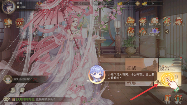 1、在主界面可進(jìn)入書院,參與育兒相關(guān)玩法,點(diǎn)擊書院進(jìn)入界面,開啟子女培養(yǎng)之旅。