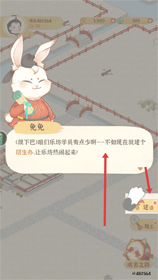 1、可根據指引建造建筑,如招生辦,點擊建造按鈕即可開始建設,讓樂坊逐漸發(fā)展壯大。