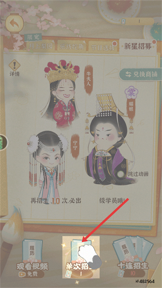 3、在招生界面可進行單次招生或十連招生,招募如牛夫人、媚娘等學員,不斷擴充樂坊學員隊伍。