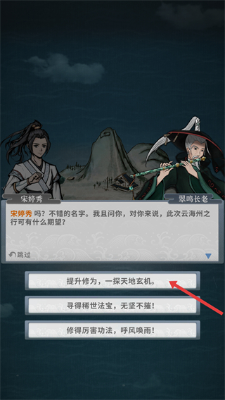 3、與NPC對話時可選擇提升修為等選項,確定后開啟對應(yīng)的修仙發(fā)展方向,影響角色成長。