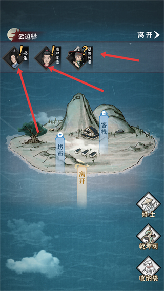 2、在云邊驛等場景可與書生、阿道姑等NPC互動,觸發(fā)不同劇情和任務(wù),推進(jìn)修仙進(jìn)程。