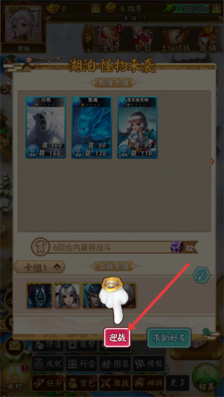 1、在怪物來襲活動(dòng),可選擇卡組點(diǎn)擊迎戰(zhàn),參與戰(zhàn)斗,在規(guī)定回合內(nèi)贏得戰(zhàn)斗可獲取獎(jiǎng)勵(lì)。
