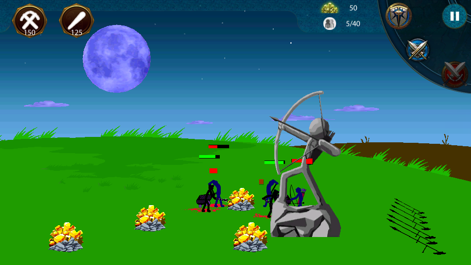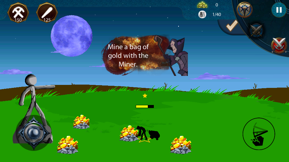 2、建造弓箭手等戰(zhàn)斗單位,利用弓箭手的遠程攻擊能力,對抗敵方的火柴人部隊,保衛(wèi)己方資源和陣地。