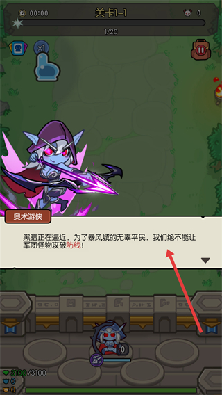 1、奧術(shù)游俠會說明背景,為保護(hù)暴風(fēng)城的無辜平民,需阻止軍團(tuán)怪物攻破防線,開啟防御戰(zhàn)斗。