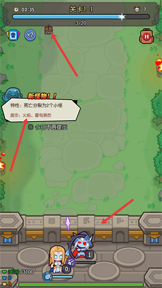 3、會遇到新怪物,其特性為死亡分裂為2個小怪,需注意怪物的特性和弱點,調(diào)整防御策略,有效擊敗怪物。
